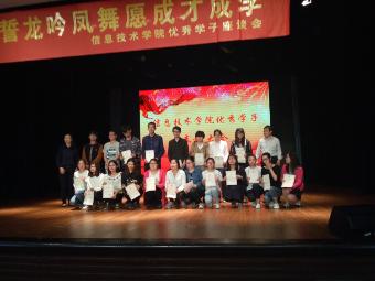 首先,由沈静老师宣读了关于表彰优秀学子的决定,接着,由学生工作处屠宏斐处长、信息技术学院胡孔法院长为优秀学子颁奖,并与优秀学子合影留念。