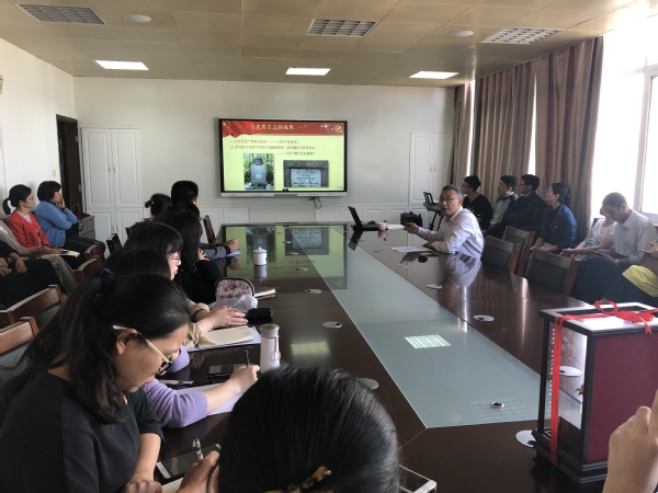 殷书记首先谈了自己“读原文、悟原理”的心得,简述了马克思主义的发展过程,特别是马克思主义中国化的历程和丰硕理论成果,以及实践意义。之后,殷书记又向大家介绍了“不忘初心、牢记使命”主题教育以来,学院领导班子和班子成员个人深入调研的情况。围绕调研整理出的党建工作缺乏标杆项目、学生一志愿率低、党建带团建作用未得到充分发挥、学工队伍年轻缺乏工作经验等不足和问题,提出了运用新思想指导实践、推动工作存在的差距和改进工作的思路措施。