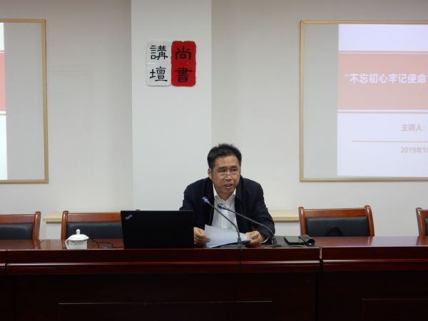 张玉清书记指出,“不忘初心、牢记使命”主题教育正当其时。他带着大家回顾了中国共产党历史上十几次重大的主题教育,特别是党的十八大以来,“党的群众路线”、“三严三实”、“两学一做”等学校教育活动都各有侧重和特点,而“不忘初心、牢记使命”主题教育与之有一脉相承的联系,也有所不同,主要体现在:面临的形式不同、目标任务不同、活动形式不同,广大党员必须深刻理解本次主题教育活动的主要内涵和重大意义。