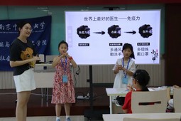 接下来就是为期3天的“趣味编程课堂”和“中医药文化讲堂”。编程系列课程共有3个课时,都在上午开展,包括“Scratch编程软件”入门、“小球弹弹弹”和“贪吃蛇小游戏制作”以及歌曲创作和自由创作,带领小朋友们逐步走进编程的世界,领略编程的风采,瞻望前沿科技。下午的课程是由南京中医药大学护理学院带来的“特色中医文化讲堂”,带领小朋友们走近中医药传统文化,了解学习中医药相关知识。志愿者通过“积食”、“人体的秘密开关”、“小脚丫的秘密”3次课程带领小朋友认识了部分人体穴位,学习了一些基本的推拿手法,共同探寻人体穴位的奥秘。小朋友们对于中医药知识非常感兴趣,从他们认真的眼神中,我们感受到了中医药文化传承的蓬勃动力。