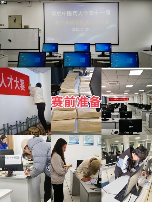 为了提供良好的比赛环境,智信学院实验室提供了最新配置的机房,图灵社的同学提前测试了机器配置,挂横幅、贴准考证,有条不紊地布置了赛场。