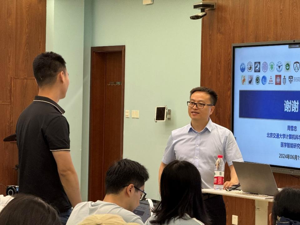 报告结束后,周雪忠教授与师生进行了深入交流,与会代表与周教授讨论了中医诊疗数据标准化、复杂模型可解释性、中医系统生物学分析思路及方法、中医人工智能未来发展趋势等问题。学术沙龙反响热烈,参会人员纷纷表示受益匪浅。周作建副会长表示,此次学术活动是中医药人工智能的一次盛筵,为更好地开展中医药与信息技术融合的中医真实世界研究指明了方向,对中医药传承、创新与发展具有重要意义。