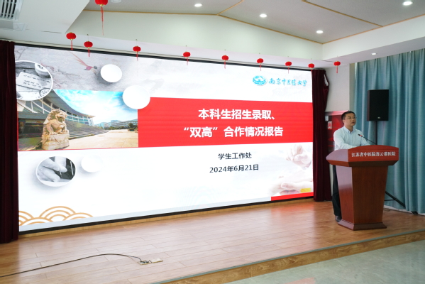 张家炯在致辞中介绍了连云港的基本情况和高等教育、医疗卫生情况。张家炯希望,南京中医药大学与连云港市继续加大在人才培养、科学研究、产学研协同等领域深入合作,与在港中小学、医疗机构、医药企业密切合作、交流互鉴,加快形成新质生产力,共同打造校地合作的新典范。