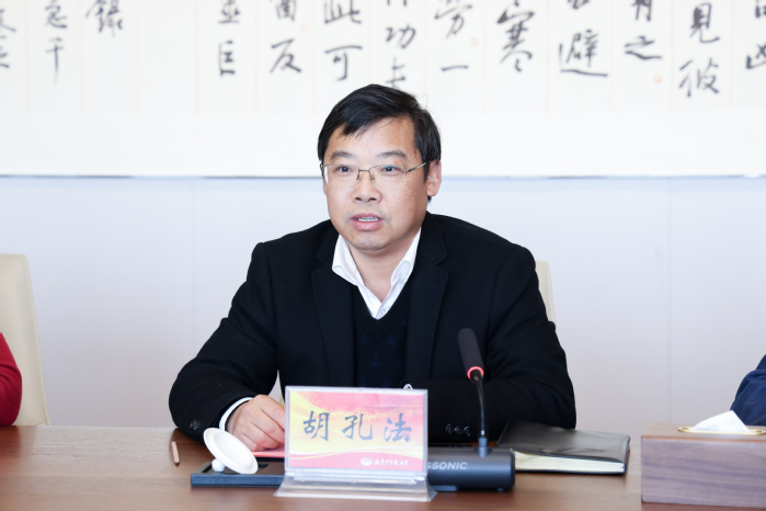 胡孔法代表学校对许田一行来访表示热烈欢迎,他简要介绍我校中医药人工智能学科建设情况。胡孔法指出,我校一直以来十分重视中医药继承创新,正在大力开展中医药人工智能交叉学科建设。希望发挥双方特色和优势,将人工智能、大数据等新一代信息技术应用到中医药领域,共同致力于中医药传承创新高质量发展。
