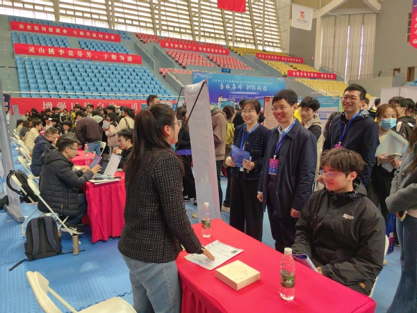 学院党总支书记殷明,副院长(主持行政工作)周作建,副书记、副院长李新路一行深入双选会计算机类专业招聘专区,逐一与用人单位亲切交流,详细了解行业市场需求,向长期以来关心、支持学院毕业生的用人单位表示感谢,并在展位现场积极推介毕业生。